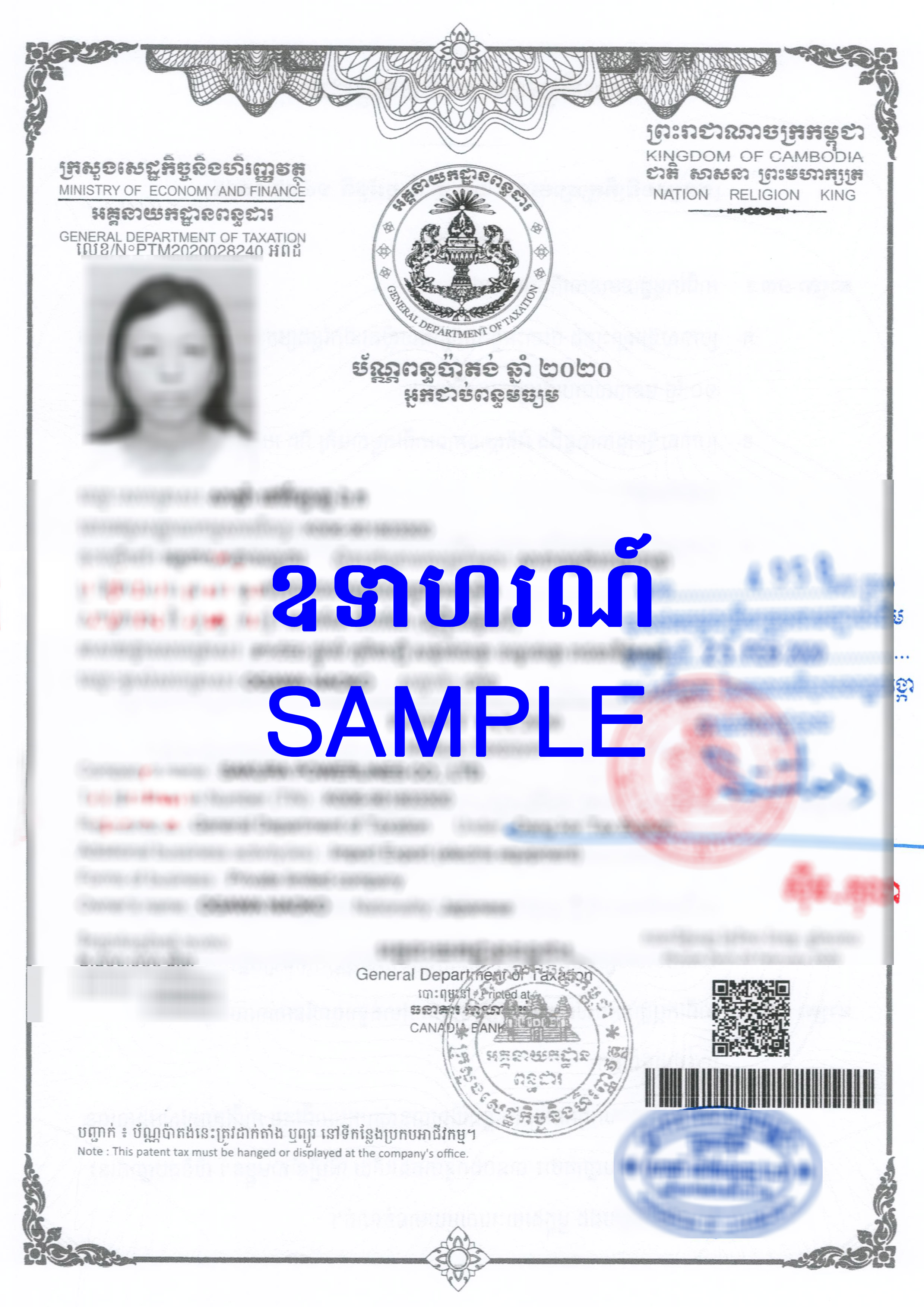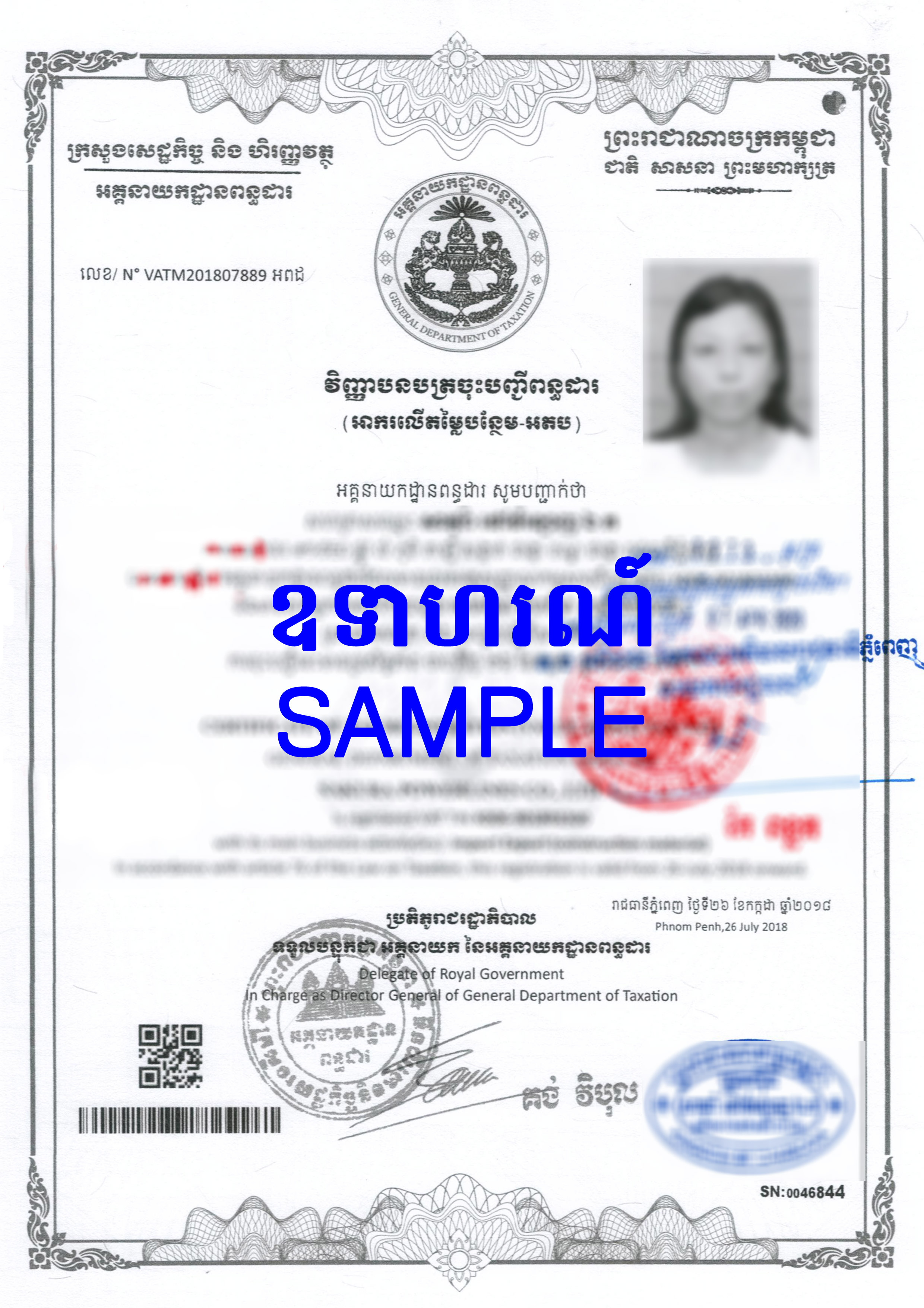 វិញ្ញាបនបត្រ បញ្ចាក់ការចុះឈ្មោះក្នុងបញ្ចីពាណិជ្ជកម្ម